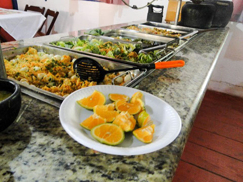 Servimos os pratos quentes no fogão a lenha e em panela de barro no melhor "estilo mineiro" e as saladas e frios em balcão refrigerado.