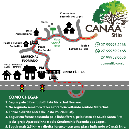 - Seguir mais 2.5 Km e a direita irá encontrar uma placa indicando o Canaã Sítio.