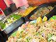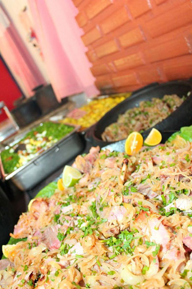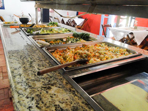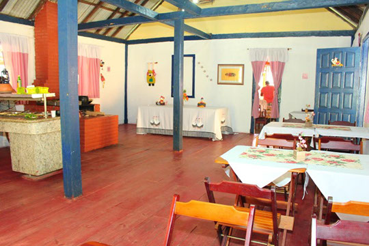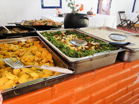 Servimos os pratos quentes no fogão a lenha e em panela de barro no melhor "estilo mineiro" e as saladas e frios em balcão refrigerado.